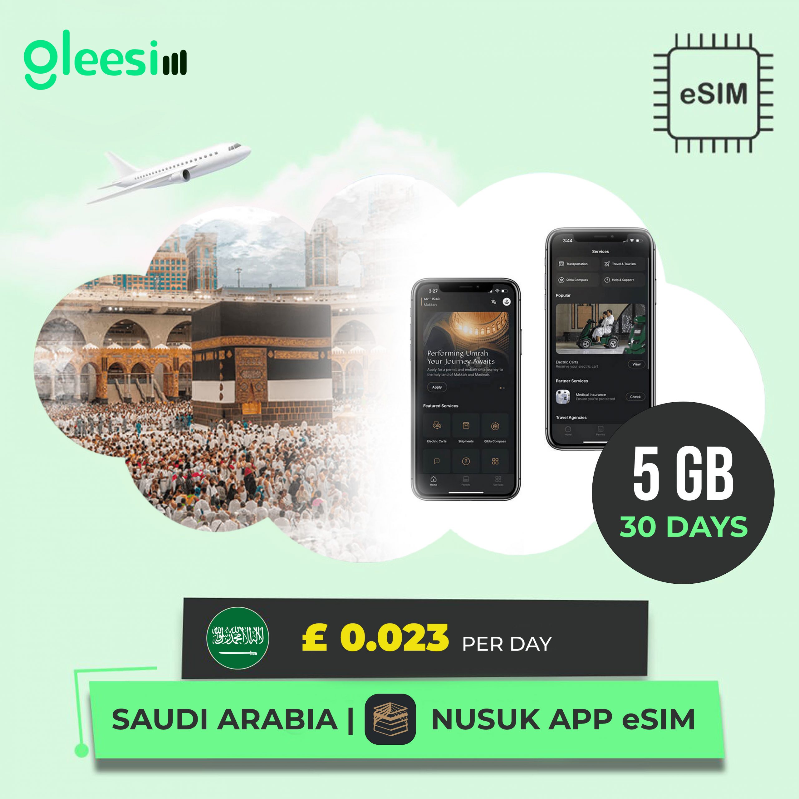 Staying connected to the NUSUK app at all times with Gleesim's eSIM Saudi Arabia guarantees a more convenient and well-planned pilgrimage experience.